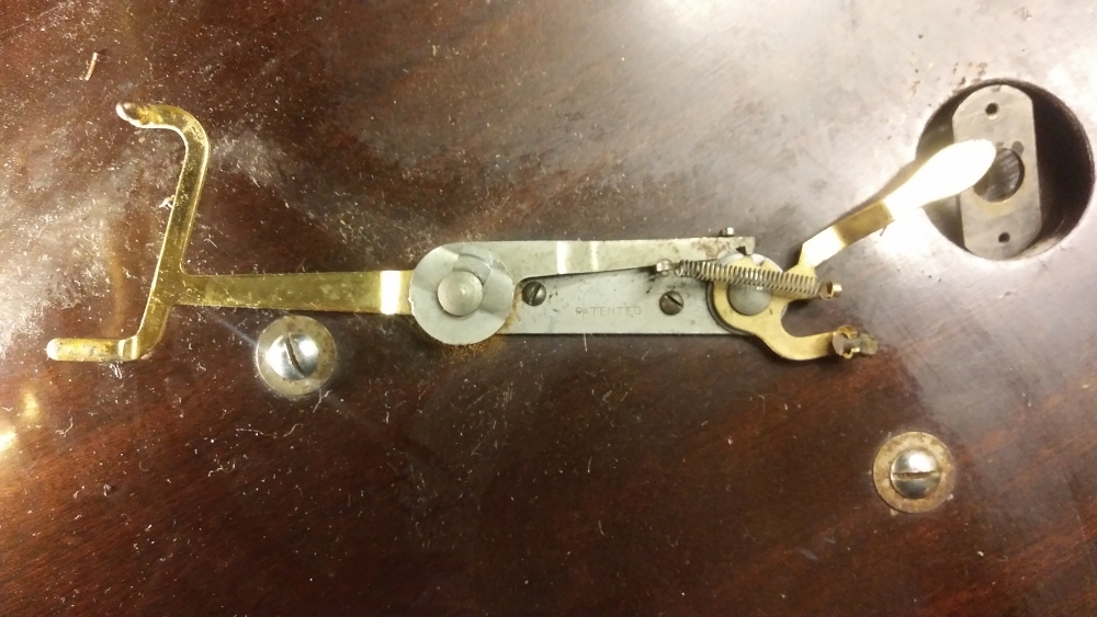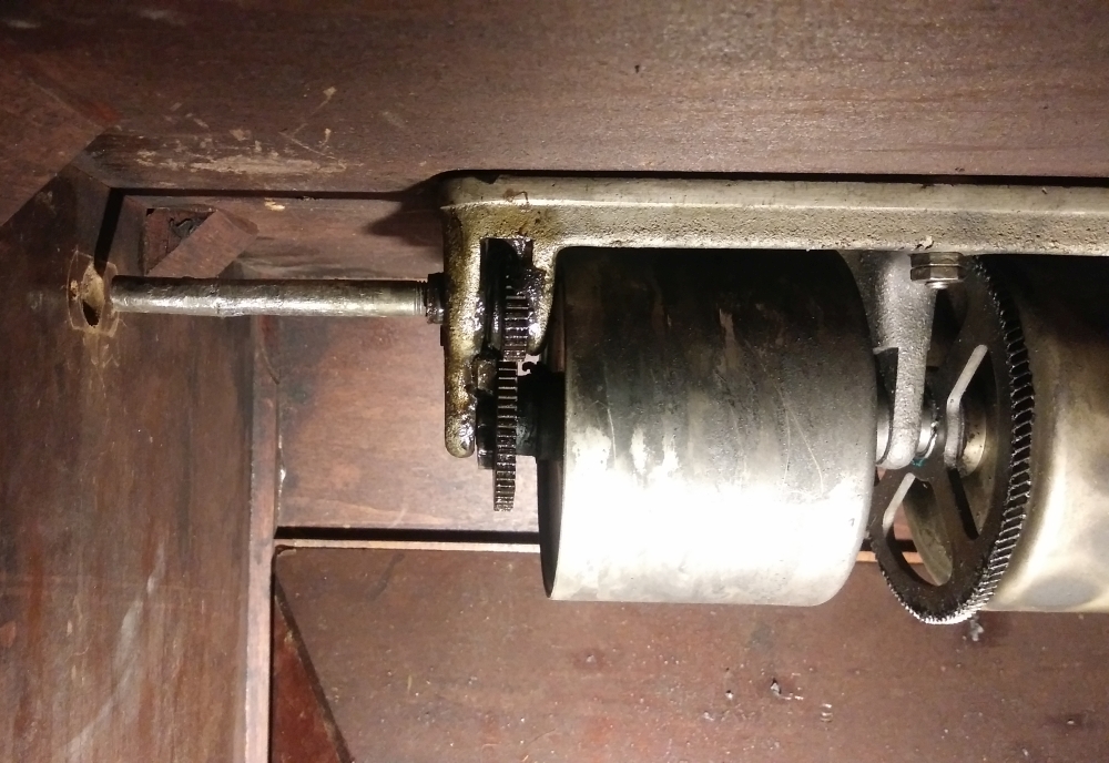 Mechanizm z widoczną urwaną korbą do nakręcania