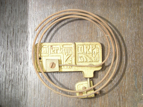 Mechanizm niby chodzi, ale zawieszka wahadła jest bombowa, dorobiona z miedzianego drutu zawieszona na blaszce z puszki po konserwie.